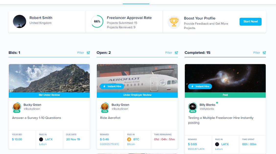 Completing projects in the Latium Platform requires contracts to be in multiple different statuses throughout the process. You can view the status of any contract by visiting the For Freelancers page.