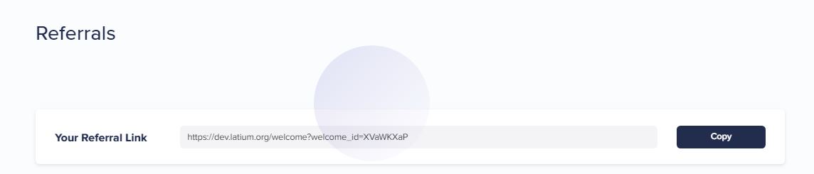 To share your referral link you first need to navigate to the Referrals Page on the Latium platform.