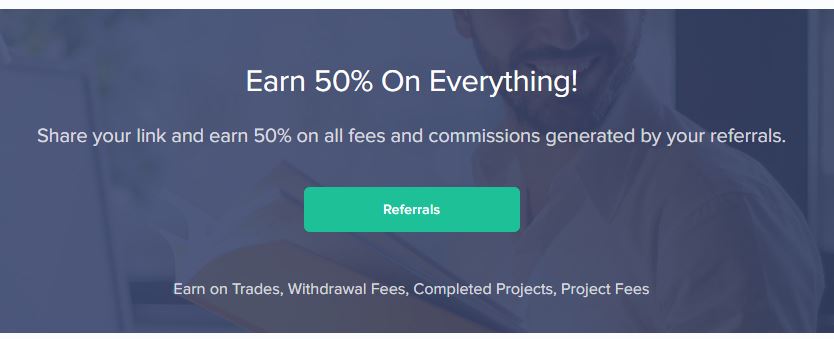 Вы зарабатываете 50% от всех вознаграждений и комиссий, сгенерированных вашими привлеченными пользователями. Таким образом, вы зарабатываете каждый раз, когда вами привлеченный пользователь выполняет следующие действия: