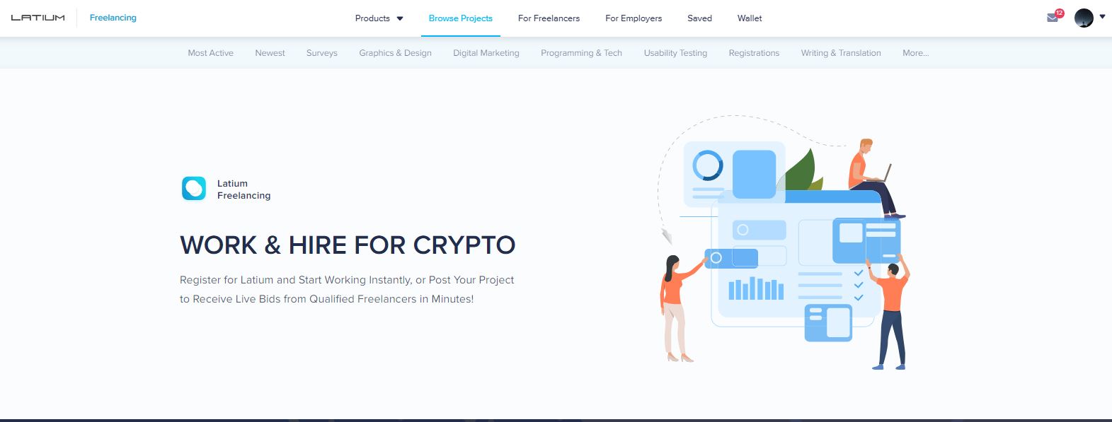 El primer uso brinda una oportunidad única para que los usuarios obtengan ingresos adicionales debido a la naturaleza de los proyectos en el ecosistema de Latium. Estos proyectos pueden abarcar desde encuestas y actividades en redes sociales hasta diseño gráfico y desarrollo de software. La estructura del proyecto Latium ha sido creada para que los usuarios interactúen de manera simple y fácil con sus empleadores.