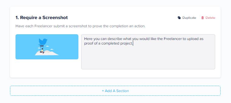 Screenshot Proofs is a feature Employers can use to verify that a Freelancer has completed part of the project. You can turn on the ability to accept Screenshot Proofs in the Project Details section.