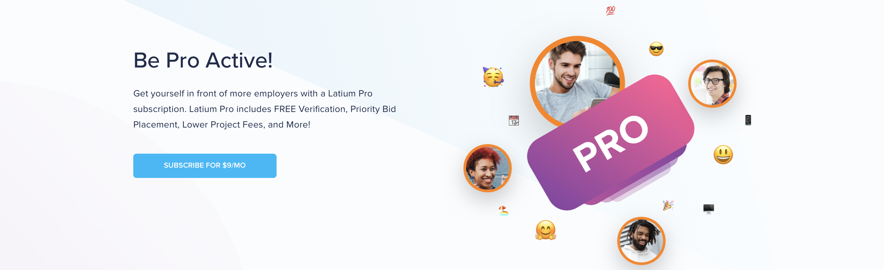 The Latium Pro plan is the top of the line option for Latium Freelancers. It provides users with the best opportunity to find work and get in front of potential employers.